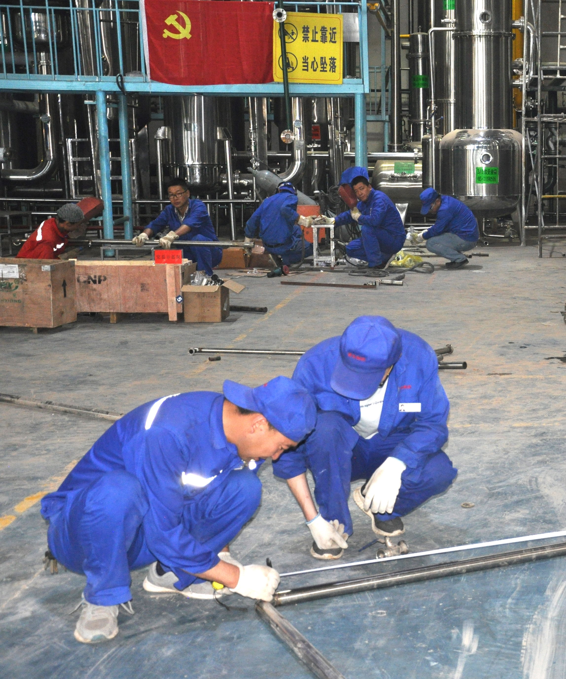 7月中旬,公司正式停機,公司領導、生產管理部、維修班及公司技術人員成立了技改小組,對車間廠房、設備設施及管線等進行施工安裝。為了保證項目進度,確保擴產改造工程順利進行,公司黨員充分發揮黨員先鋒模范作用,積極開展技術傳幫帶,自發組織設立了三個“黨員示范崗”。黨員領導干部帶頭工作在一線,帶領職工齊心協力攻克難題,不辭辛勞的加班加點工作。截至7月22日,提取車間廠房擴建、提取罐、濃縮罐等已安裝完成,部分管線也已完成更換,新增的管道正在進行安裝;配制灌裝車間的功能間擴建已完成,配制罐和純化水儲罐也已安裝完成,正在進行管線連接,空調系統的安裝也在同時進行。