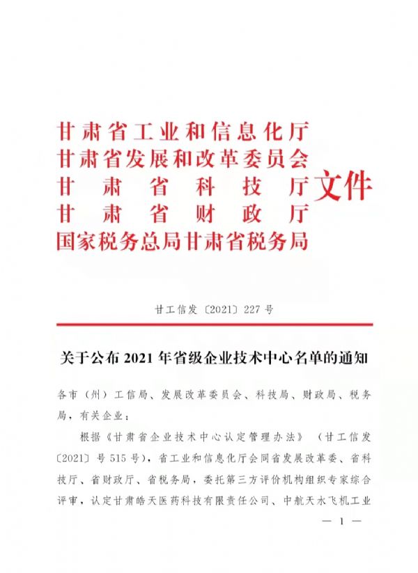 ​喜報!喜報!普安制藥通過“2021年省級企業技術中心”認定