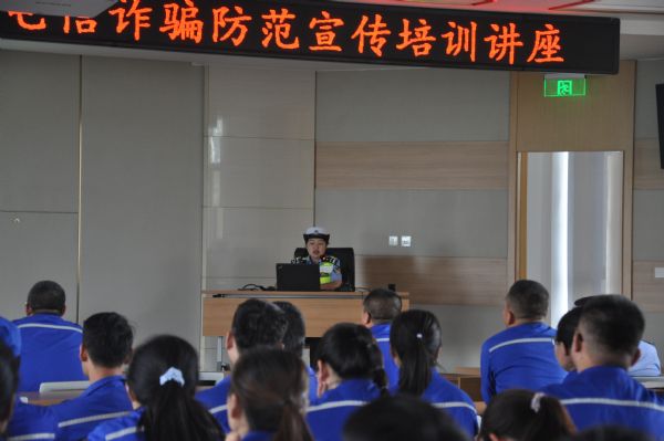 觀看影片結(jié)束后,武威市涼州區(qū)公安局宣傳中心滕年峰警官通過現(xiàn)場解說電信詐騙犯罪分子的慣用手法、作案方式,提醒廣大員工提高電信安全防范意識,不輕信涉及賬號、密碼等信息的微信或短信通知,不輕易點(diǎn)陌生鏈接、掃陌生二維碼,以及日常生活中加強(qiáng)個人信息保護(hù),嚴(yán)防網(wǎng)絡(luò)詐騙。