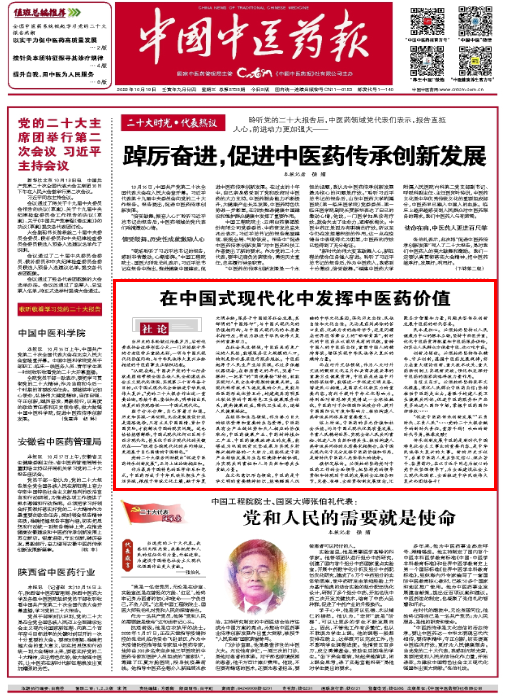 “促進中醫藥傳承創新發展”“不負時代、不負人民”……黨的二十大報告賦予的新時代責任,重若千鈞!吹響的新時代號角,振聾發聵!