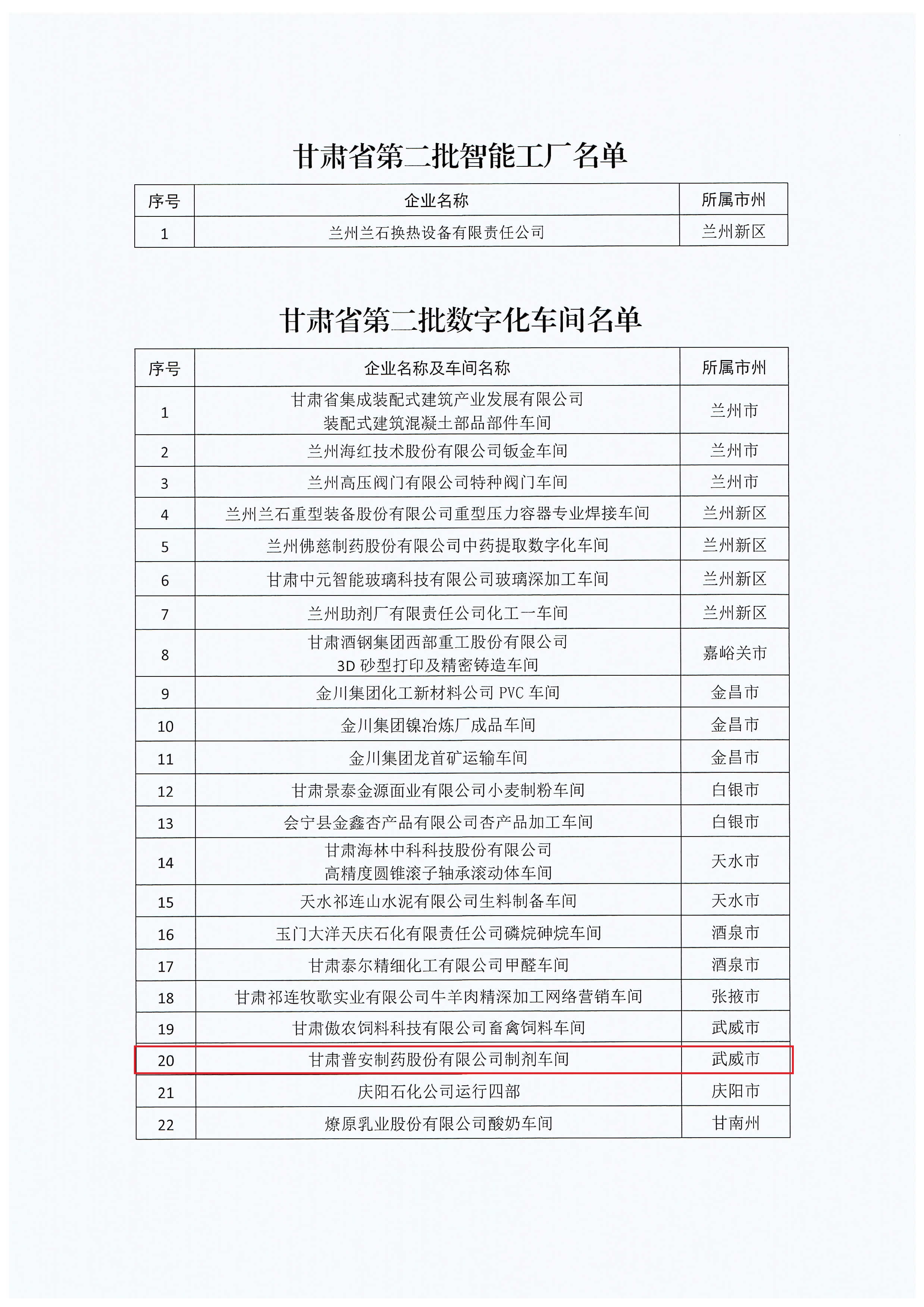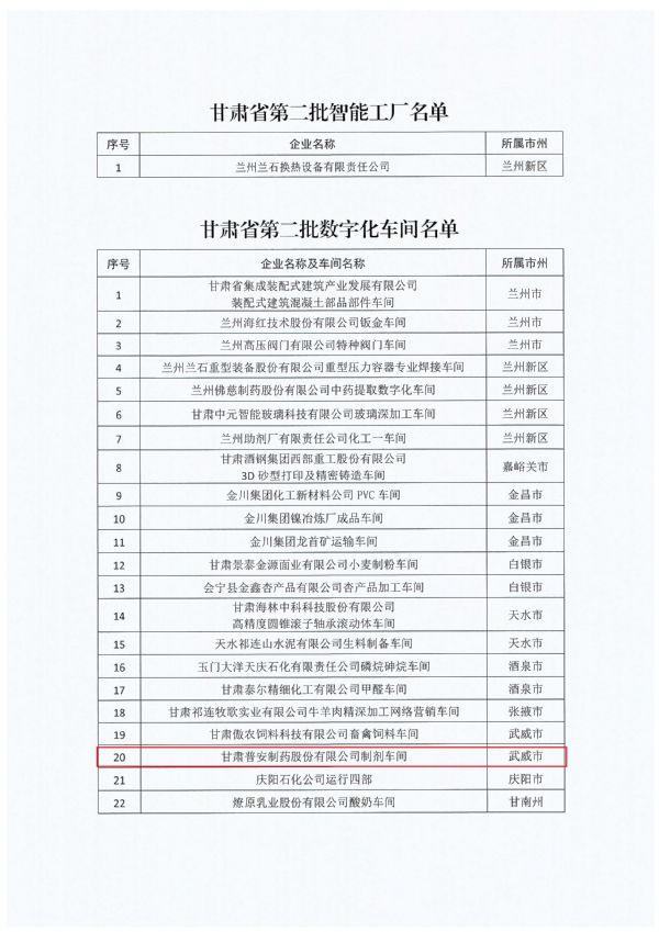 〖創新驅動 智能制造〗熱烈祝賀甘肅藥業集團普安制藥制劑車間通過甘肅省第二批數字化車間認定