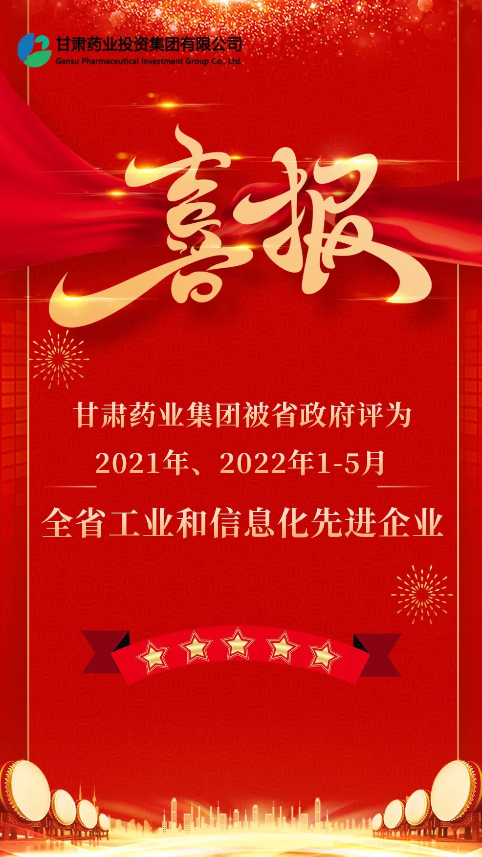 甘肅藥業集團被省政府評為2021年、2022年1-5月全省工業和信息化先進企業