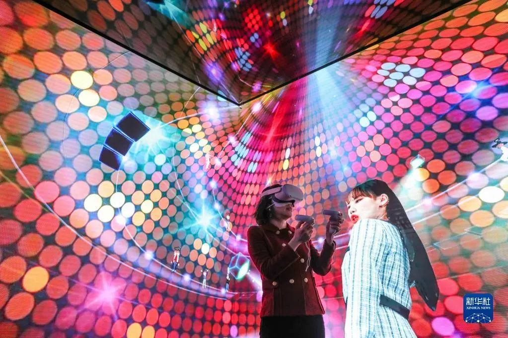 2022年3月1日,一名女子在西班牙巴塞羅那2022世界移動通信大會上通過虛擬現實技術在“元宇宙”中體驗音樂會。新華社記者 鄭煥松 攝