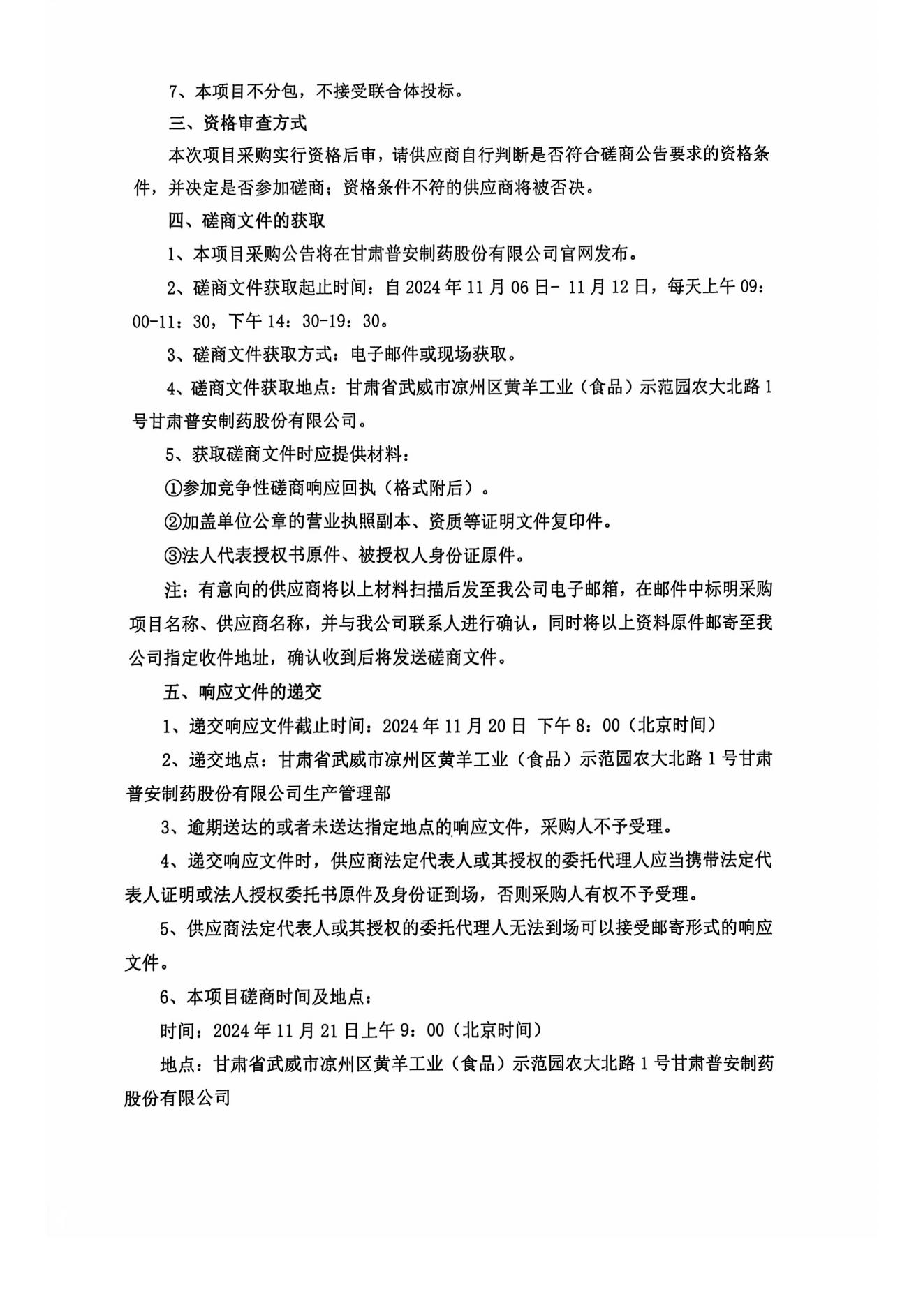 甘肅普安制藥股份有限公司10ml灌裝機組設備采購競爭性磋商公告