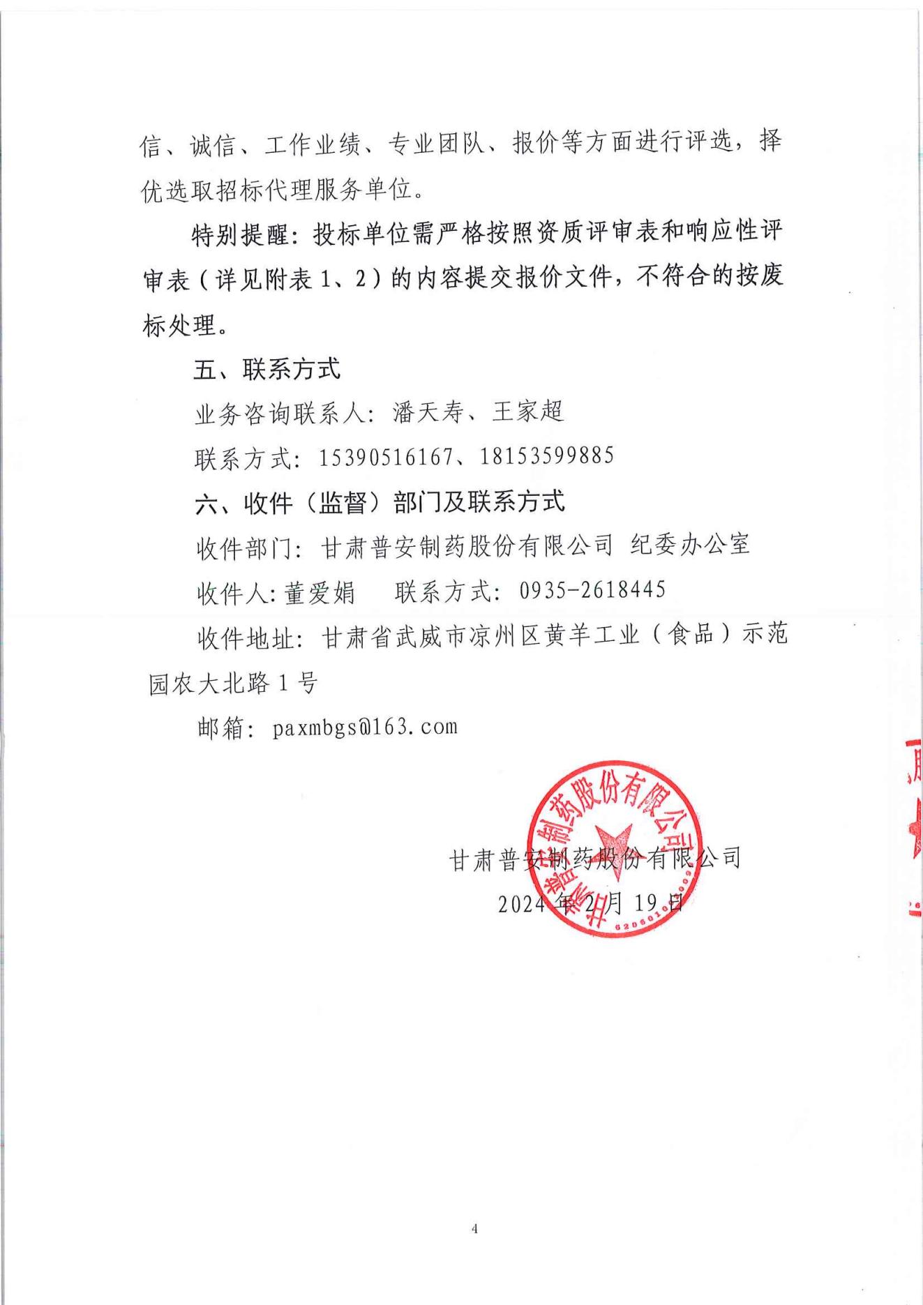 甘肅普安制藥股份有限公司基礎(chǔ)設(shè)施改造項(xiàng)目招標(biāo)代理招標(biāo)公告