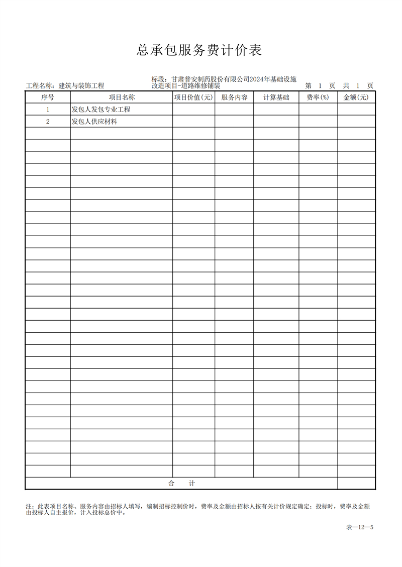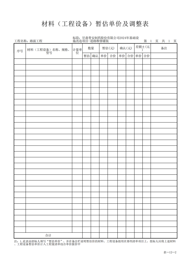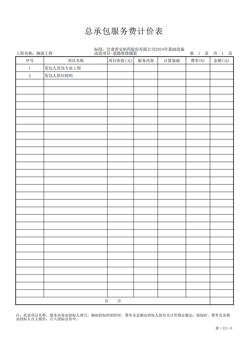 甘肅普安制藥股份有限公司2024年基礎設施改造項目-道路維修鋪裝工程招標公告