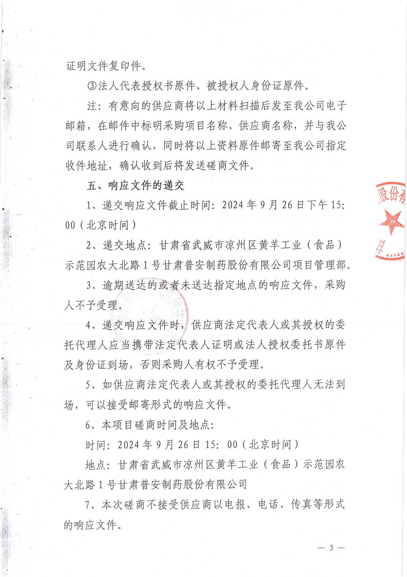 甘肅普安制藥股份有限公司基礎設施改造項目--食堂改擴建工程廚房設備采購及安裝競爭性磋商公告