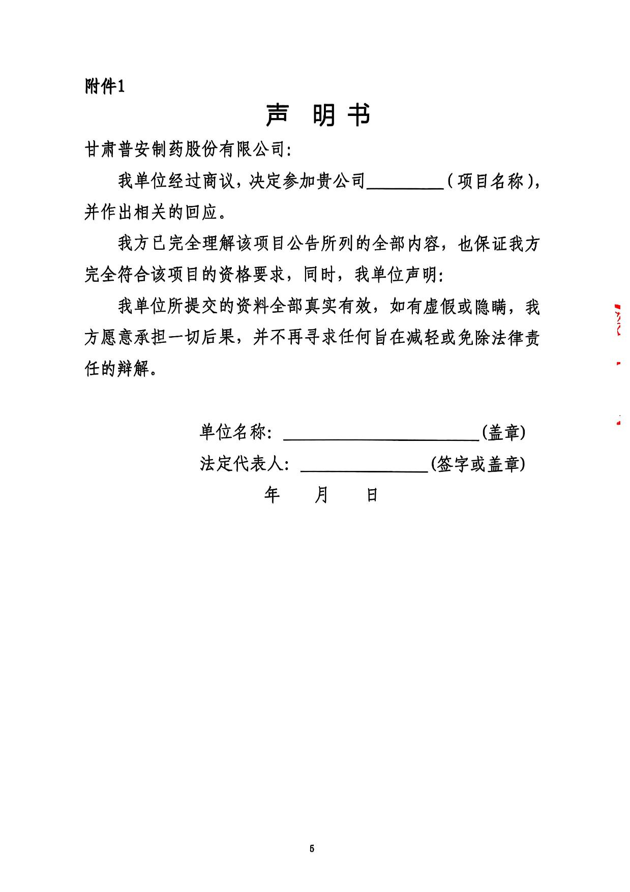 甘肅普安制藥股份有限公司產品承運等項目招標代理服務招標公告