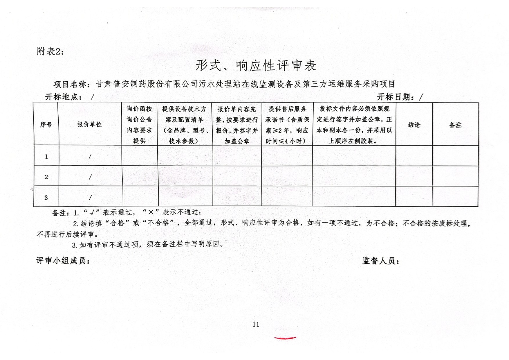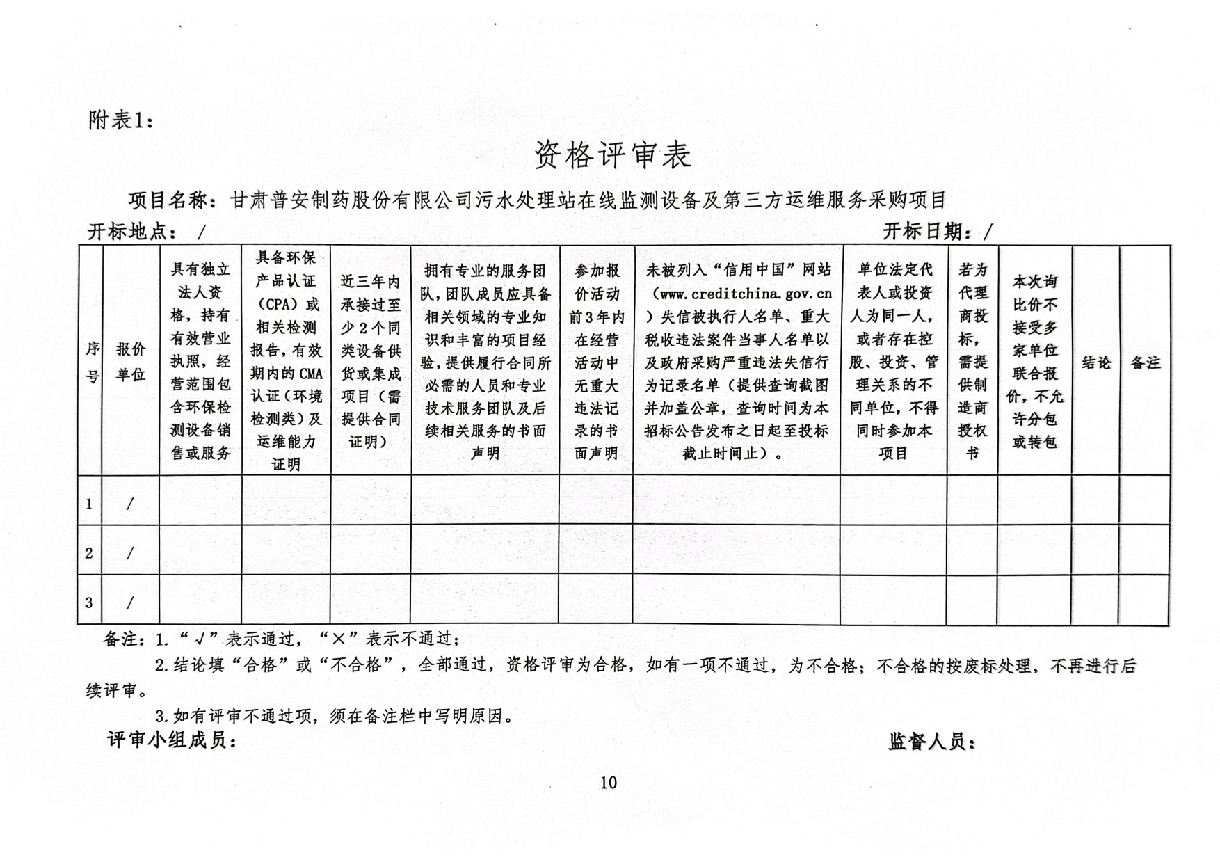 甘肅普安制藥股份有限公司污水處理站在線監測設備及第三方運維服務采購項目