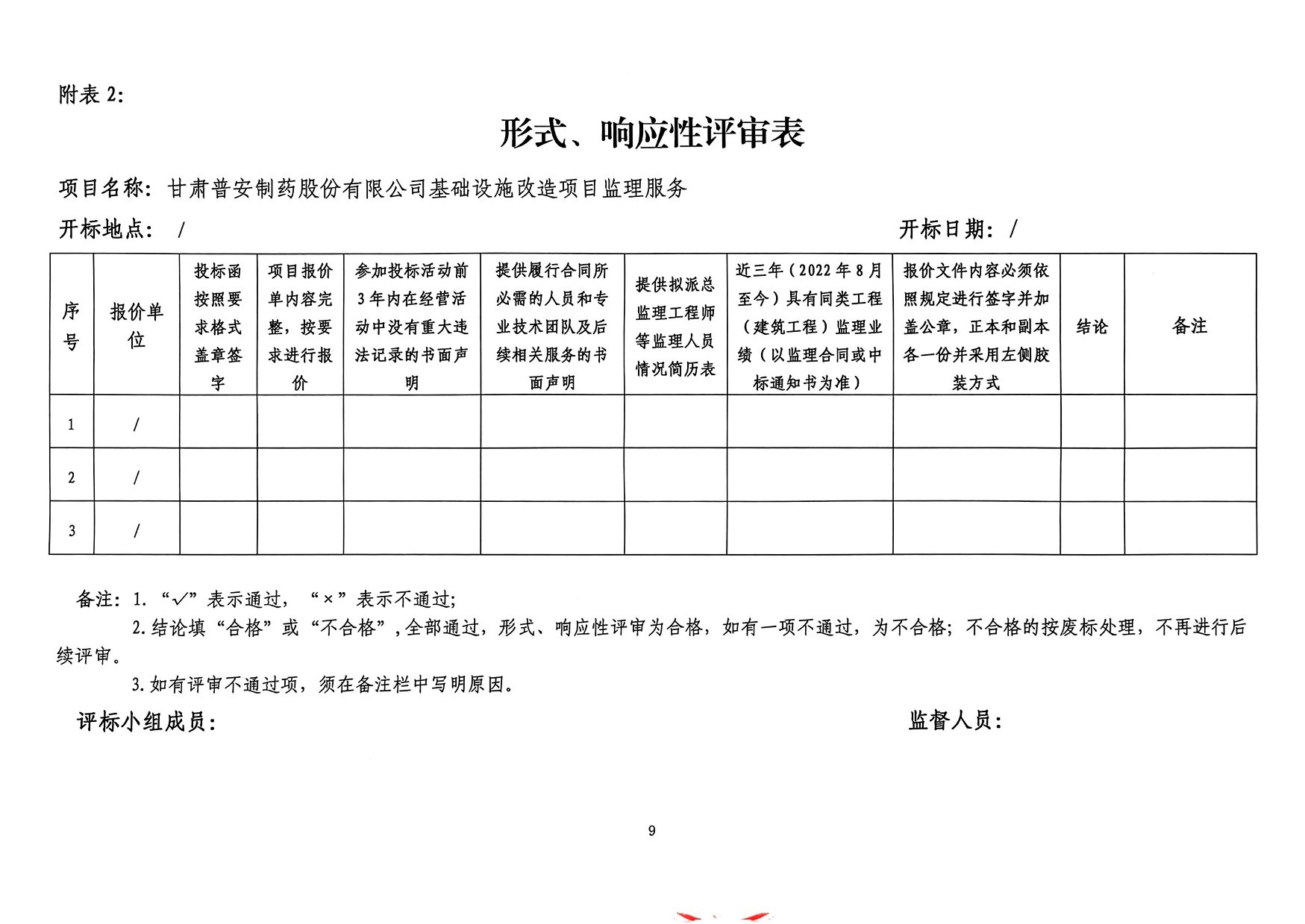 甘肅普安制藥股份有限公司 基礎設施改造項目監理服務詢價公告