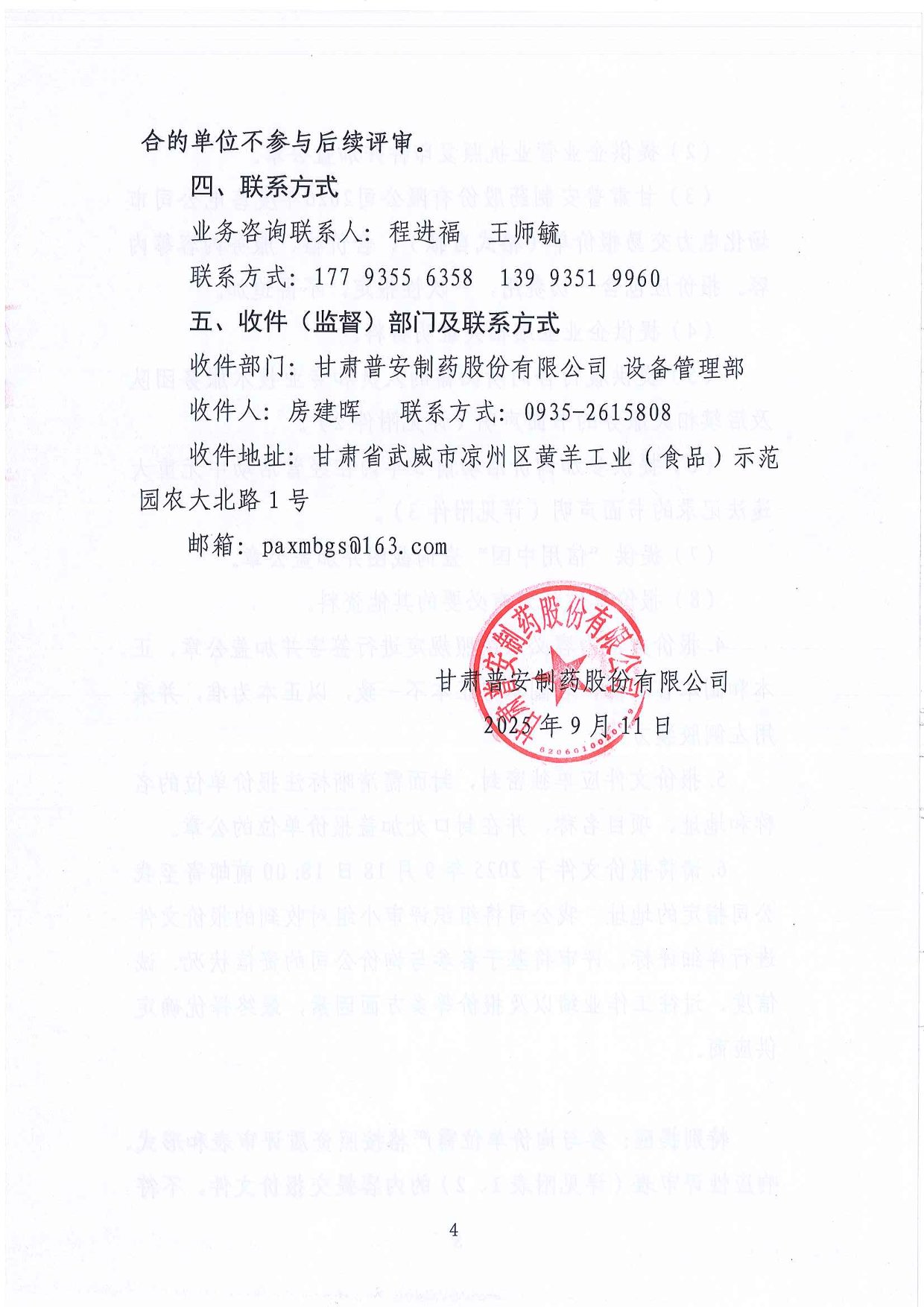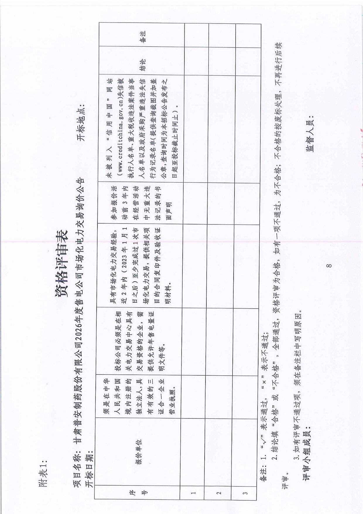 甘肅普安制藥股份有限公司2026年度售電公司市場化電力交易詢價公告